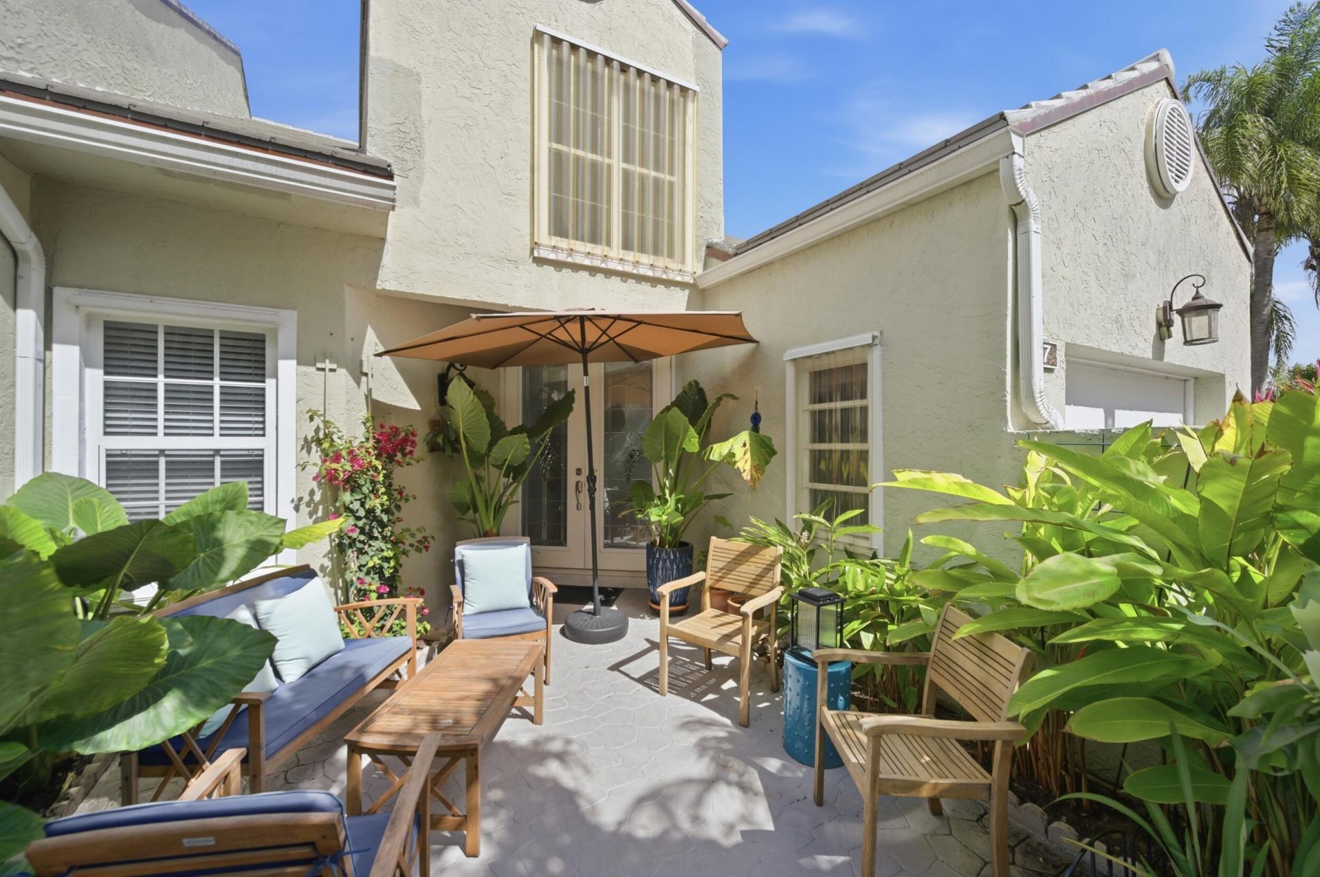Immaculately maintained + bright, this airy 2/2 waterfront villa with attached 1 car garage offers relaxing lake views while being steps from the Intracoastal Waterway. This spacious end unit has hurricane impact windows + sliders, fully renovated kitchen, double glass doors, porcelain tile throughout,+ a new roof as well as soaring vaulted ceilings + a split floor plan, The upgraded kitchen has a skylight, is bright and inviting. Enjoy the water views from your backyard patio or relax and garden in your front, pavered and gated patio.Located in a pet-friendly, gated community, you'll love the lush tropical landscaping, a heated pool, hot tub, gazebo, and tennis/pickleball courts. HOA includes WiFi, cable, gym, clubhouse, pool, all exterior maintenance and more! (cont.) The Lakeshore community features a direct Intracoastal waterfront community pool and hot tub, where you can relax and watch the yachts and boats cruise by. The community also offers tennis courts, shuffleboard, pickleball, and a clubhouse with a library and fitness center. Located in the charming town of Hypoluxo, this home offers the perfect blend of tranquility and convenience. You'll be just a short drive away from pristine beaches, world-class dining, upscale shopping, and a variety of cultural attractions. Don't miss this incredible opportunity to embrace the relaxed lifestyle in the Lakeshore community. This property is perfect for those seeking a peaceful and active lifestyle in a stunning water view setting. Schedule your private showing today and discover the magic! Your retreat awaits! Pool, hot tub and gazebo are right on the water and a expansive private beach along the intracoastal. Tons of amenities including clubhouse, tennis, pickle ball, gym. Location cannot be beat just minutes to the beach, near I95, Palm Beach International Airport, Delray Beach & West Palm Beach. Pet friendly. Rarely available end unit villa on dead end street.